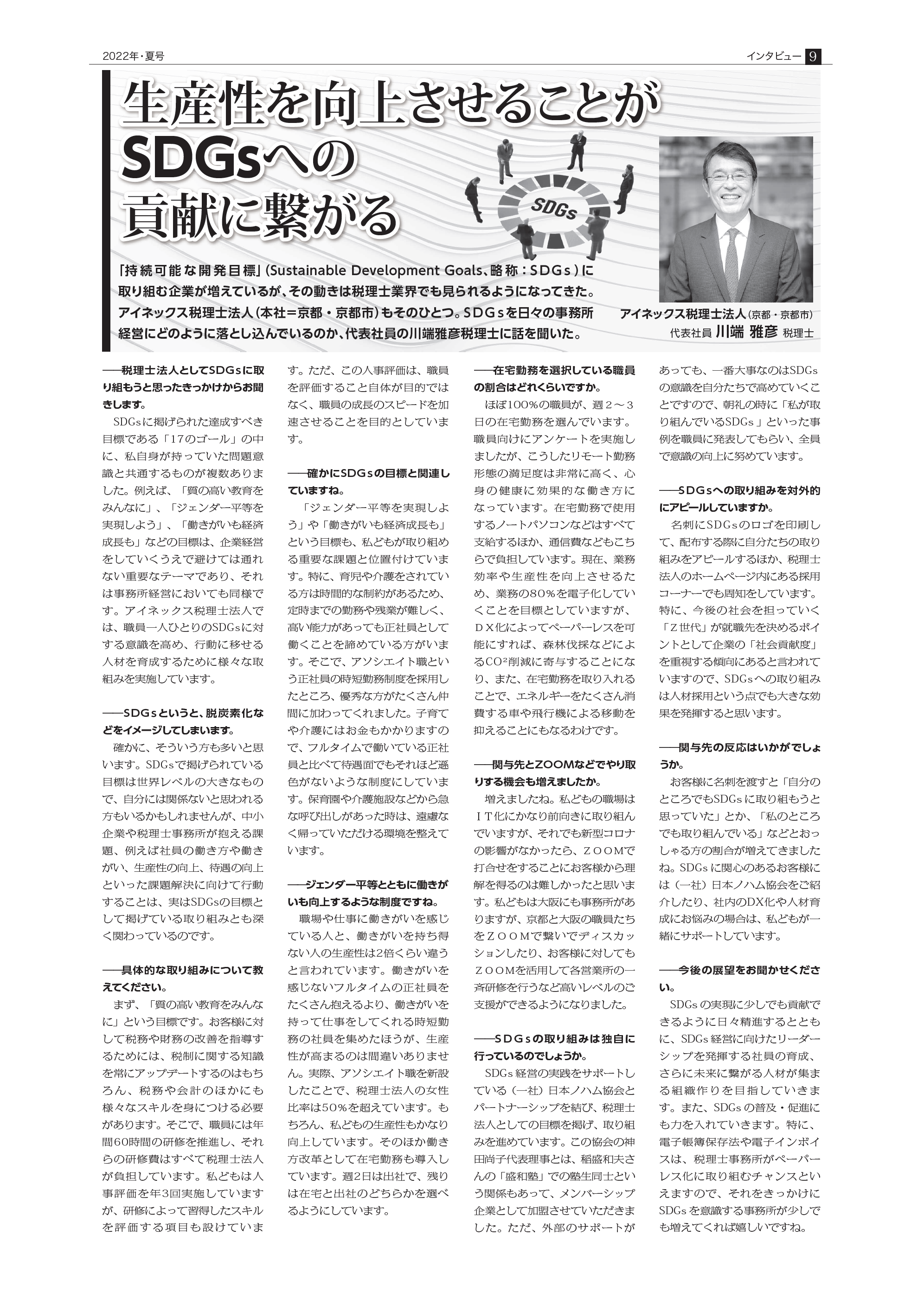 さて、7月15日に発刊された「日税ジャーナル」第45号に弊社代表の川端のインタビュー記事が掲載されました!
